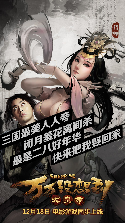 在双11当天联合《万万没想到》电影举行影游发布会之后,游族网络今日宣布万万系列最强手游《万万没想到之大皇帝》定于12月18日与大电影同步上线。“万万没想到”的夸张幽默风格结合三国历史的经典战役、英雄与美人,再辅以独创的卡牌策略、后宫玩法将为千万手游玩家带来“想不到”的新乐趣。