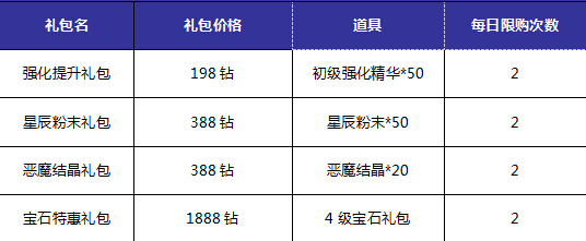 活动期间将在商场中推出特价礼包,限时限购,详见【商场】-【抢购】。