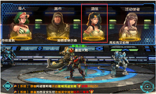 在游戏中,玩家可在主场景中点击“投影设备”进入“酒馆”进行伙伴招募。重要的事再重复一遍,点击酒馆按钮就可以进入招募系统了,我们可以在里面获得各种机甲英雄。