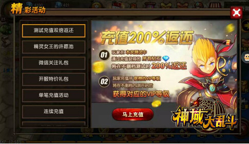 赚到了!开服福利惊喜不断,活动奖励丰富返还。为了庆祝首测来临,同时也为了帮助玩家充分体验游戏的魅力,首测期间开展了八大福利活动,玩家在本次测试中通过充值获得的所有钻石,都将在不删档公测时200%返还,另外还有登陆送好礼、商城特价抢购、充值奖励、消耗赠送、首充拿武器装备等精彩活动内容,游戏任务回报也是十分丰富!快来领取属于自己的丰厚奖励吧!