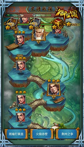 《御龙三国》中,史诗战役以三国故事为背景,以章节关卡形式展现,真实还原黄巾起义、董卓之乱、濮阳之战、赤壁之战、官渡之战等经典战役。史诗战役主要产出装备碎片,主公通过的关卡越多,获得的装备碎片就越多,不断累计的装备碎片可以打造强力的极品装备。