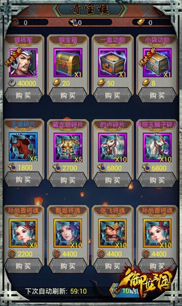 《御龙三国》中,“奇宝楼”也是获得装备的主要途径之一,世间所有稀世神器全部被封印于此。当主公等级达到16级后,可以通过功勋资源换得你所需要的装备道具,把这些当世最强神器收入麾下,纵横沙场。