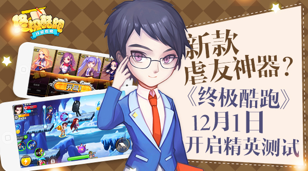 2015年12月1日,《终极酷跑》全面开跑!叫上你的好友,虐与被虐,看谁才是主宰!精英测试即将开启,极限竞速等你加入!