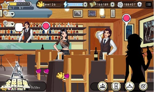 在现实中,人与人的约会一般都在派对、酒吧、餐厅里进行,而在《全民巨星》里也不例外,玩家如果接到派对任务,进入场景便可通过邀请功能,可邀请巨星好友或同为新人的圈内好友一起进行任务,如果玩家到酒吧里小酌几杯,也可邀请心仪的对象一起约会,完成约会任务,可增加双方的好感度,累积更多好感度,就能做些羞羞的事了哟~
