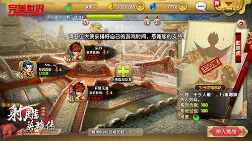 正所谓“侠之大者,为国勇当先”,在金庸先生的15部小说之中,爱国精神,是侠义之心的体现,而在《射雕英雄传3D》手游,守卫开封玩法,便是对金庸先生这种侠义精神的完美诠释。守卫开封是一项以帮派为单位的创新型交互玩法,混合了单人、帮派、组队等多种模式在其中,每周日至周五,大金国会派出小波先锋部队分攻宋都开封,玩家将单枪匹马迎战金兵。到了周六,则会转变为集中进攻模式,这时玩家可以组建4人小分队,共同迎敌,当然,击破敌军后,丰厚的奖励是必不可少的~