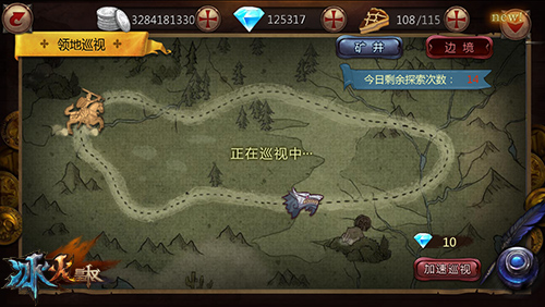 9377《冰火皇权》领地巡视系统当中的矿井资源生产和掠夺玩法目前只对VIP领主开放,而“边境巡视”则是所有领主都能够体验的另外一大主要玩法。带领自己的英雄队伍在领土边境进行巡逻,惩治不法之徒、发现的一切宝物收归国库……在你的领地之中,你可以“为所欲为”。