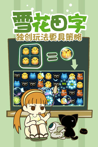 《罗小黑战记》是一款超萌气国漫正版休闲手游,游戏原IP是一部充满中国式玄幻色彩的精彩国产动漫。一只猫妖盗取老君的天明珠被谛听发现,打回原形重伤而逃至凡间,被一个少女收养,期间发生了种种离奇的故事,萌趣暖心,自2011年出品连载至今,已坐拥2000W粉丝!而同名正版手游《罗小黑战记》在取得原IP正式授权后,与动画作者MTJJ共同制作,以原动画剧情为关卡主线,带领玩家一同进入罗小黑的奇幻暖萌世界!游戏以三消趣味玩法为基础设定,独创雪花消除、“田”字生成智能泡泡等玩法,让玩家体验丰富多彩花样百出的消除策略!更有百分百还原原着呆萌可爱角色的宠物打滚卖萌求包养,动画级剧情完美融入游戏进程,革新智能AI设计结合多种清新可爱的消除效果和Q软治愈音效,让你亲身感受与罗小黑一同战斗的激萌体验!