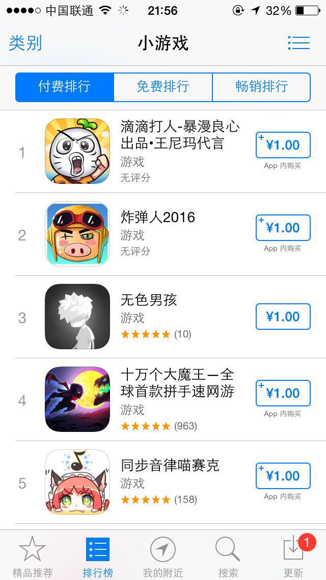 暴漫《滴滴打人》在IOS上线,凭借良好的口碑,众多玩家口口相传仅1小时破百万,加上行业内外的小伙伴真情推荐,游戏上线后,得到众多媒体的一致好评推荐及曝光!截止5号,《滴滴打人》以强大的实力及优势,冲上IOS小游戏榜的付费榜以及畅销排行榜榜首位,并蝉联多日!