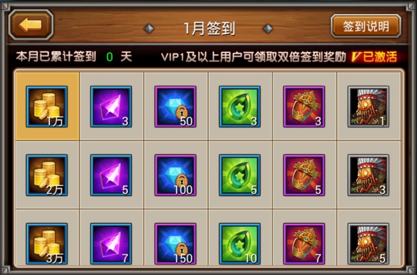 钻石的来源有些贫瘠,只有靠游戏中的一些特定活动和充值才能获得,玩家可以先购买一张VIP月卡,这样不仅直接可以领取300钻和首冲礼包,还能每天得到100钻石,一个月就有3000钻啦!土豪生活从此开启,买买买再也不是难事!